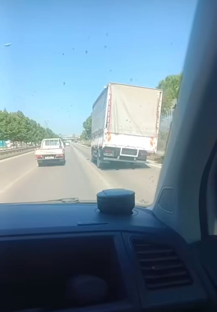 Olay, merkez Nilüfer ilçesi İzmir Yolu Caddesi üzerinde meydana geldi. Edinilen bilgiye göre, yan şekilde seyreden kamyonu gören diğer sürücüler, gözlerine inanamadı. Zaman zaman devrilme tehlikesi atlatan kamyonu görenler dönüp bir daha bakarken o anlar kamera ile kaydedildi.