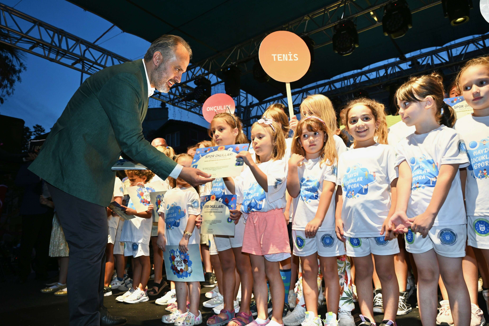 Bursa Büyükşehir Belediyesi tarafından düzenlenen yaz spor okulları, küçük sporcuların renkli gösterileri eşliğinde yapılan temsili sertifika töreniyle sona erdi.