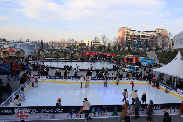 Bursa Büyükşehir Belediyesi tarafından Eski Atatürk Stadyumu alanında hazırlanan ‘Bursa Yeni Yıl Meydanı’nda, birbirinden renkli etkinliklerle yeni yıl heyecanı yaşanmaya başlandı. Yapay kar yağışıyla doyasıya eğlenen vatandaşlar, açık havada hazırlanan buz pisti ve diğer etkinlik alanlarıyla keyifli bir gün geçirdi.