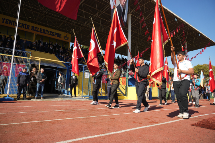 29 Ekim Cumhuriyet Bayramı kutlamaları Yenişehir’de çok uzun yıllar sonra ilk defa ilçe stadyumunda büyük bir coşkuyla kutlandı. Yenişehir Kaymakamı Ümit Altay, Garnizon Komutanı İbrahim Feyzi Büğdüz, Belediye Başkanı Ercan Özel’in yanı sıra, kamu kurum ve kuruluşların temsilcileri, Türk Silahlı Kuvvetleri personeli, gaziler, öğrenciler ve çok sayıda vatandaşın katıldığı tören, sabah saatlerinde renkli görüntülere sahne oldu.