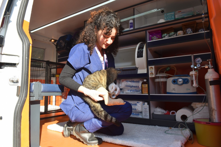 Hayvan ambulansıyla olay yerine ulaşan ekip, en kısa sürede yaralı ya da yardıma muhtaç can dostlarına müdahale ediyor. Müdahalenin ardından yoğun bakım ve solunum destek ünitesi ile hayati fonksiyon için önem arz eden cihaz ve donanımların yer aldığı ambulans ile rehabilitasyon merkezine getirilen can dostların burada tedavisi devam ediyor.