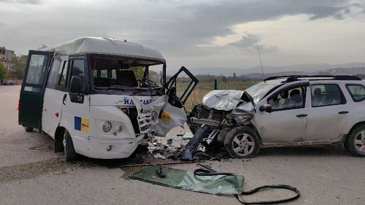 Bursa'nın İnegöl ilçesi kırsal Hamzabey mahallesinde meydana gelen kazada minibüs ile cip çarpıştı; 11 kişi yaralandı.