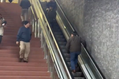 Bursa’da bir vatandaş, metrodan indikten sonra yukarı çıkmak için yürüyen merdivene ters bindi. Israrla ters ilerlemeye çalışan kişi, çevredekilerin şaşkın bakışları sonrası tekrar aşağı indi. O anlar kameraya yansıdı.