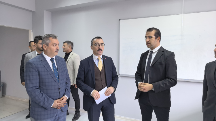 Kaymakam Eren Arslan, Milli Eğitim Müdürü Halil İbrahim Zengin ile Hacı Sevim Yıldız Mobilya ve İç Mekan Tasarımı Teknolojisi Mesleki ve Teknik Anadolu Lisesi'nde (MTAL) açılan merkezi ziyaret etti.