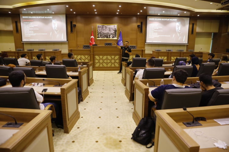Büyükşehir Belediyesi Meclis Salonu'ndaki eğitimde, Personel Geliştirme Şube Müdürlüğü tarafından Büyükşehir Belediyesi’nin tanımı, faaliyet ve yetki alanları, hizmet standartları, öğrencilerin uyması gereken kurallar, tabi oldukları mevzuat ile ödev ve sorumlulukları anlatıldı.