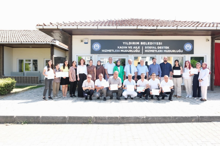 Yıldırım Belediyesi Kadın ve Aile Hizmetleri Müdürlüğü’nde gerçekleştirilen 120 saatlik eğitimi başarıyla tamamlayan katılımcılar sertifikalarını, Vali Yardımcısı Mustafa Güney’in de katıldığı törenle aldı.