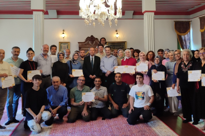 Bursa Öğretmen Akademisini başarıyla tamamlayan öğretmenler, dönem sonu sertifikalarını ünlü yazar Necip Tosun'un elinden aldı.