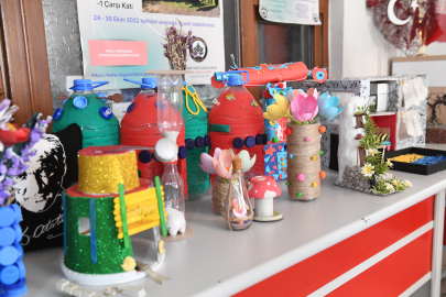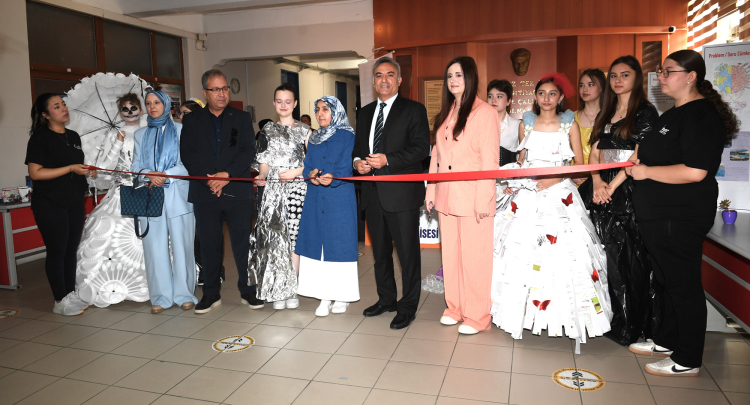 öğrenciler, geri dönüşüm malzemelerinden yapmış oldukları kıyafetler ve el işi ürünler