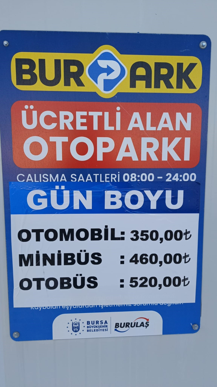 Ayrıca BURULAŞ, BURPARK otoparklarında uygulanacak ücret politikasını, Uludağ bölgesindeki mevcut otopark fiyatlarının yaklaşık üçte biri seviyesinde tutacak. Böylece hem güvenli ve profesyonel bir park hizmeti sunacak olan BURULAŞ, vatandaşların bütçesini korumaya da öncelik verecek. Fiyatlar, gün boyu otomobiller için 350 TL, minibüsler için 460 TL, otobüsler için ise 520 TL olarak belirlendi.