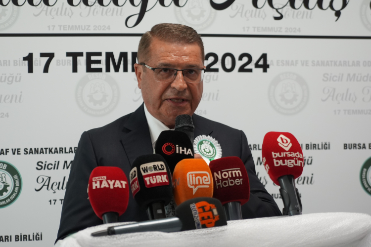 Yeni sicil müdürlüğümüzde, teknolojik altyapımızı güçlendirerek, üyelerimizin sicil işlemlerini daha hızlı ve etkin bir şekilde yapabilmelerini sağladık. Aynı zamanda, modern ve konforlu bir ortam oluşturarak, hizmet alım sürecini daha keyifli hale getirmeyi hedefledik. Bu vesileyle, kurumsal kimlik çalışmalarımız çerçevesinde logomuzu da yenilediğimizi duyurmaktan mutluluk duyuyorum. Yeni logomuz, birliğimizin yenilikçi ve çağdaş vizyonunu yansıtırken, aynı zamanda köklü geçmişimize ve değerlerimize olan bağlılığımızı da simgelemektedir. Esnaf ve sanatkarlarımızın dinamizmini ve Bursa'mızın güçlü ekonomisini temsil eden yeni logomuzla, geleceğe daha emin adımlarla ilerlemeyi hedefliyoruz. Birliğimizin yenilikçi ve vizyoner yaklaşımıyla, esnaf ve sanatkarlarımızın ihtiyaçlarını karşılamak için çalışmaya devam edeceğiz. Bugün burada açılışını yaptığımız bu yenilikler, sadece bir başlangıçtır. Gelecekte de esnaf ve sanatkarlarımızın her zaman yanında olmaya, onların gelişimini desteklemeye ve sorunlarına çözüm üretmeye devam edeceğiz. Siz değerli üyelerimizin desteğiyle, birliğimizin gücünü ve etkinliğini daha da artıracağız" diye konuştu.