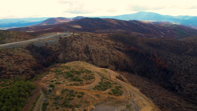 Bursa'da yaz ayında çıkan orman yangınlarında 953 hektarlık alan kül oldu. Bursa Orman Bölge Müdürlüğü ekipleri hasar tespit çalışmalarının ardından bir yandan yanmış ağaçları kaldırıyor, bir yandan da 300 bin fidanla bölgenin yeniden yeşertilmesi için çalışmalarını sürdürüyor. Yangından etkilenen bölgede ekiplerinin çalışmaları ise havadan görüntülendi.