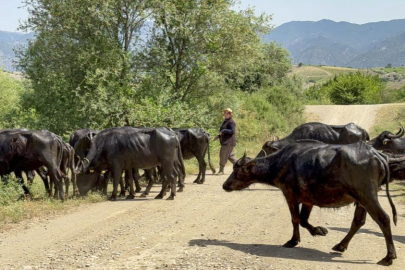 Tokat'ın Erbaa ilçesinde manda çobanlığı yapan 22 yaşındaki Melike Çakır, sıcaktan bunalan mandalarını gölette serinletiyor. Manaların sürü halinde suya girmesi Afrika belgesellerini aratmayan görüntüler oluşturuyor.