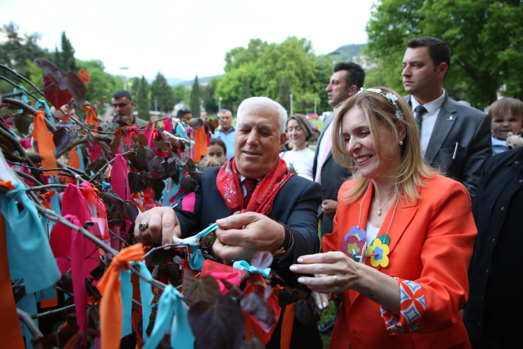 Etkinlik alanını eşi Seden Bozbey ile birlikte ziyaret eden Bursa Büyükşehir Belediye Başkanı Mustafa Bozbey, stantları tek tek gezerek vatandaşlarla sohbet etti. Günün anısına fidan diken Başkan Bozbey, kağıda yazdığı dileğini dilek ağacına kurdeleyle bağladı. Eşi Seden Bozbey ile birlikte ateşin üstünden de atlayan Başkan Bozbey, Hıdırellez coşkusunu doyasıya yaşadı. Kostüm yarışmasının kazananlarına ödüllerini veren Başkan Bozbey, Hıdırellez’in bu topraklarda yüzyıllardır kardeşçe yaşayanların ortak mirası olduğunu söyledi. Hıdırellez'i yaşatmanın geleceğe umutla bakmak demek olduğunu belirten Başkan Bozbey, "Bu güzel coğrafyanın ortak değerlerini hep birlikte koruyacağız. Tüm farklılıklarımızı yaşatarak güzel kentimizi hep birlikte yönetmeye ve büyütmeye devam edeceğiz. İnşallah tuttuğunuz dilekler gerçekleşir. Bizim en büyük dileğimiz, daha güçlü, daha mutlu, daha yeşil, daha yaşanabilir bir Bursa. Şenliği düzenlediğimiz Kültürpark da Bursa’nın merkezidir. Burada bir çoğumuzun hikayesi var. Kültürpark’ı eski işlevine kavuşturmak için etkinliklerimizi burada yapmaya başladık, yapmaya da devam edeceğiz" dedi.