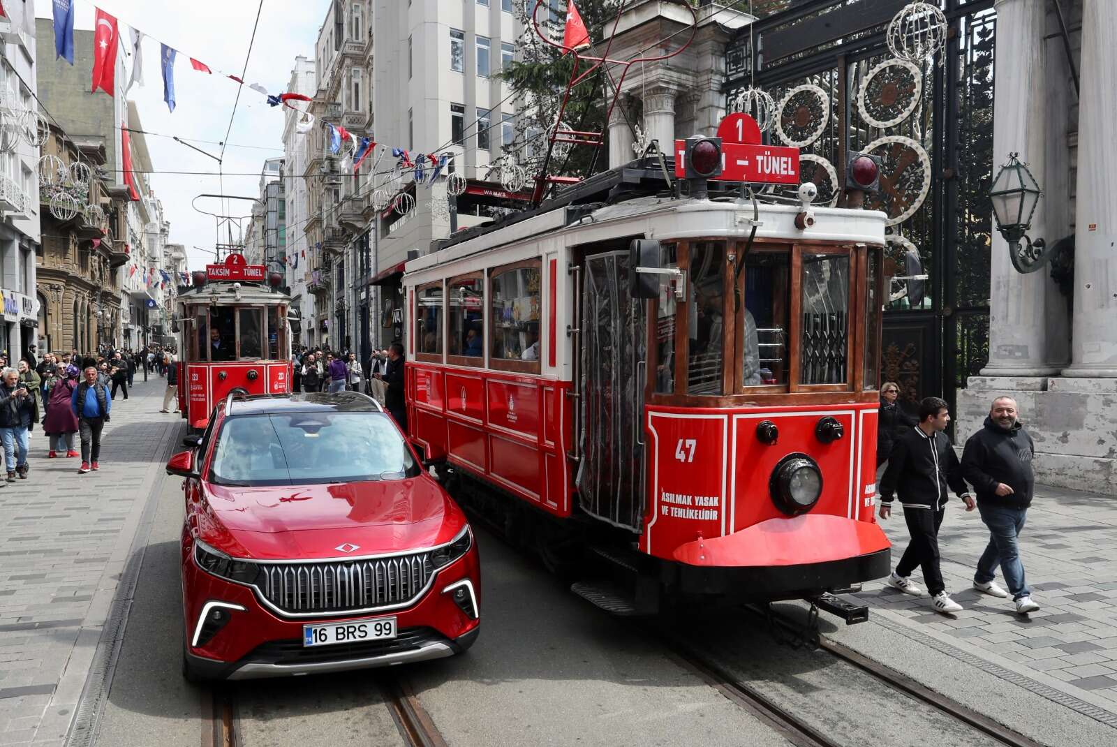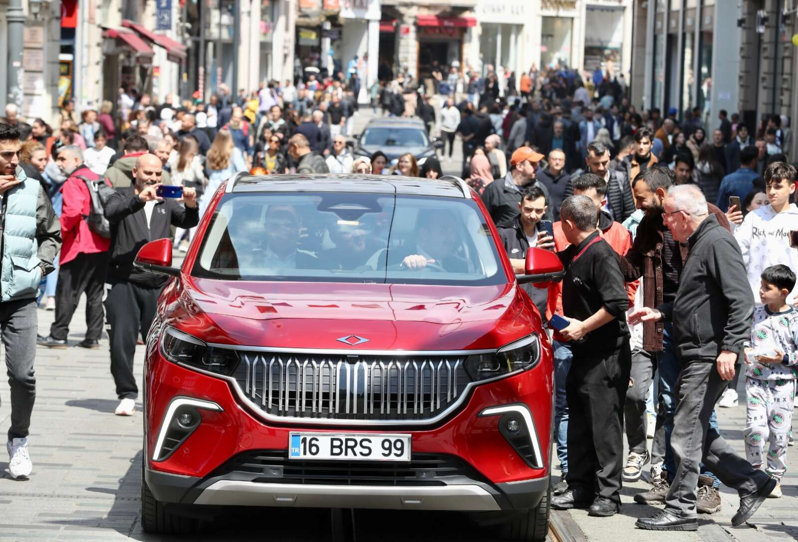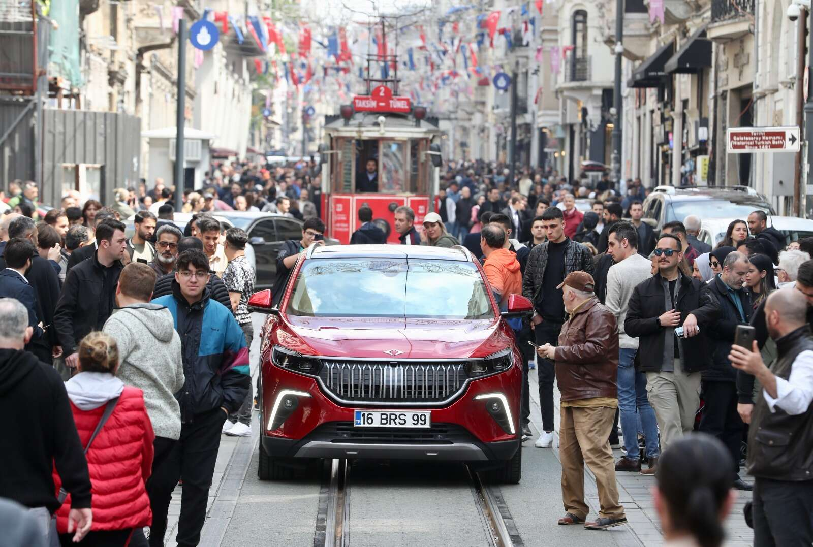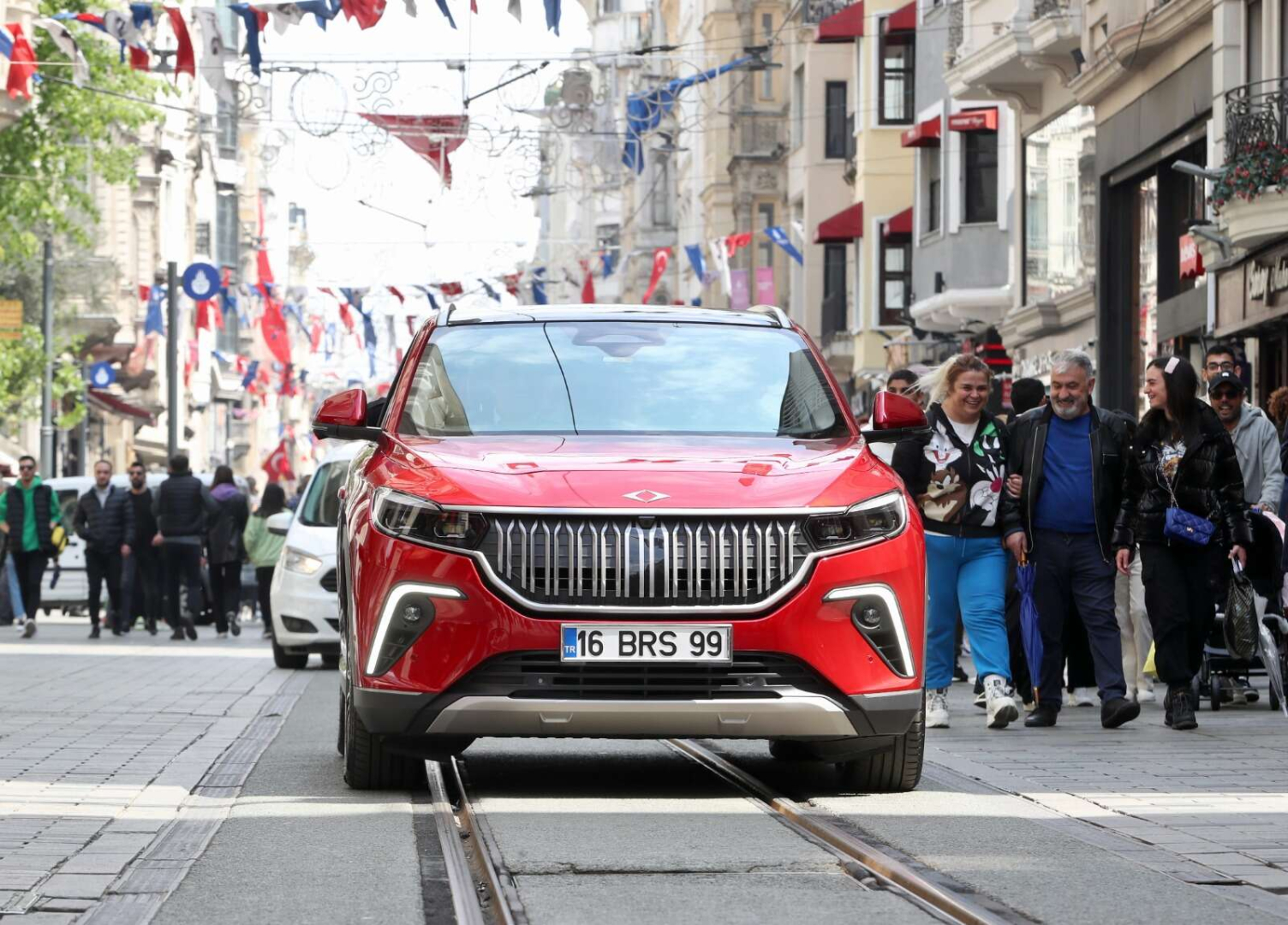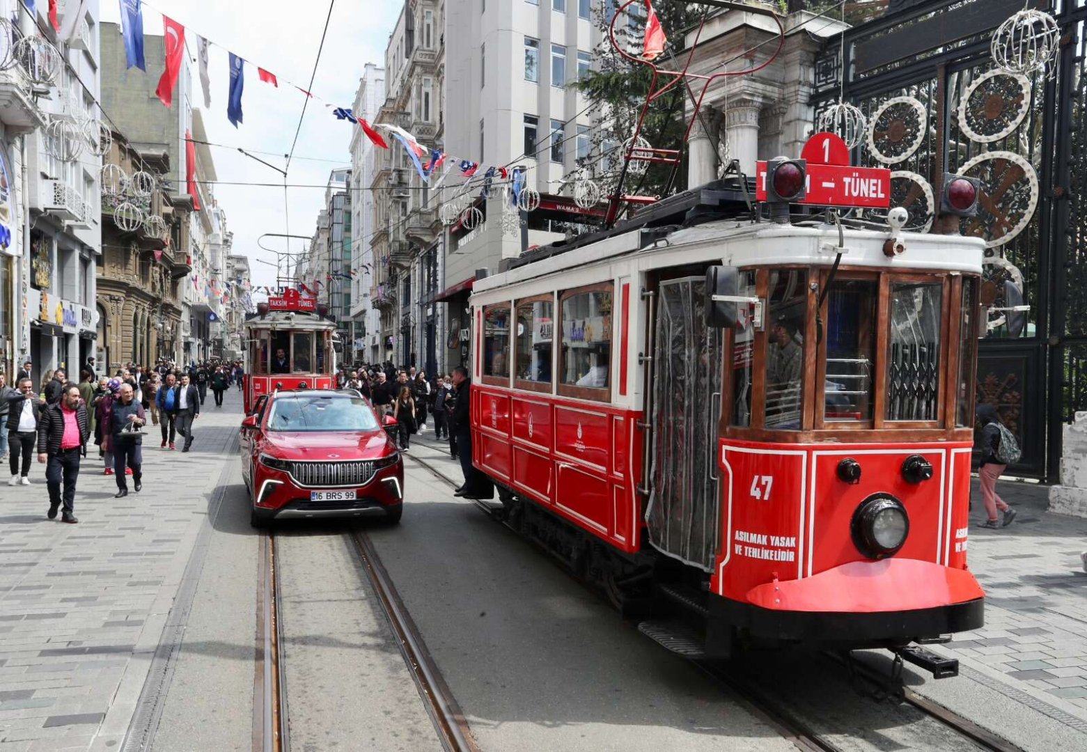 stiklal Caddesi’nin kırmızı renkli nostaljik tramvayının güzergahı da bir süre Anadolu rengi Togg’un rotasında yer aldı.