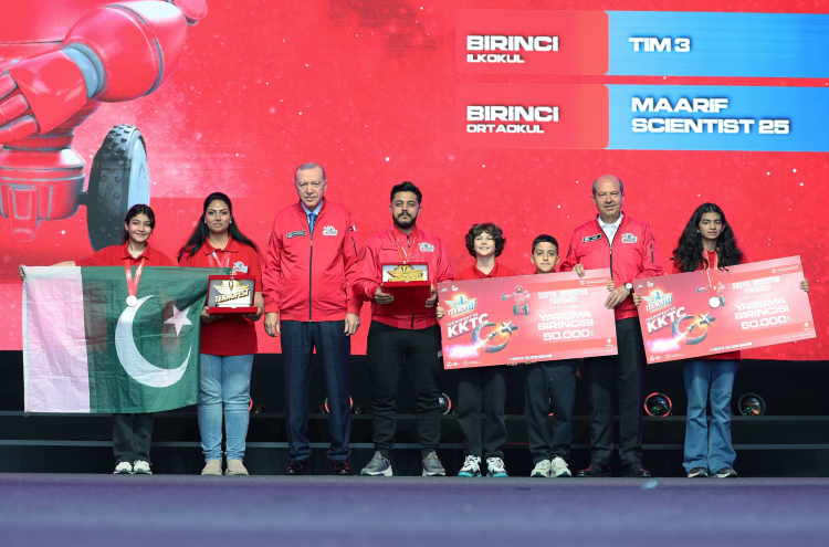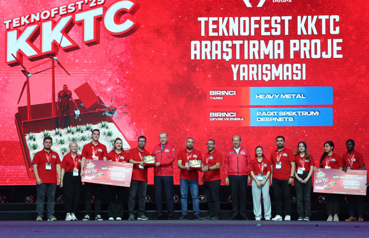 Cumhurbaşkanı Recep Tayyip Erdoğan, Kuzey Kıbrıs Türk Cumhuriyeti’nde (KKTC) düzenlenen, TEKNOFEST KKTC 2025’in ödül töreninde konuşma yaptı. Konuşmasına Kıbrıs Türk halkını selamlayarak başlayan Cumhurbaşkanı Erdoğan, "Akdeniz'in kalbinde, geçmişle geleceğin buluştuğu bu güzel topraklarda sizlerle bir arada olmanın bahtiyarlığı içindeyim. Bugün Akdeniz'in incisi, Kuzey Kıbrıs Türk Cumhuriyeti'ndeyiz. Tarihle, bilimle, teknolojiyle yoğrulmuş bir coşkuyu hep beraber yaşıyoruz" dedi.