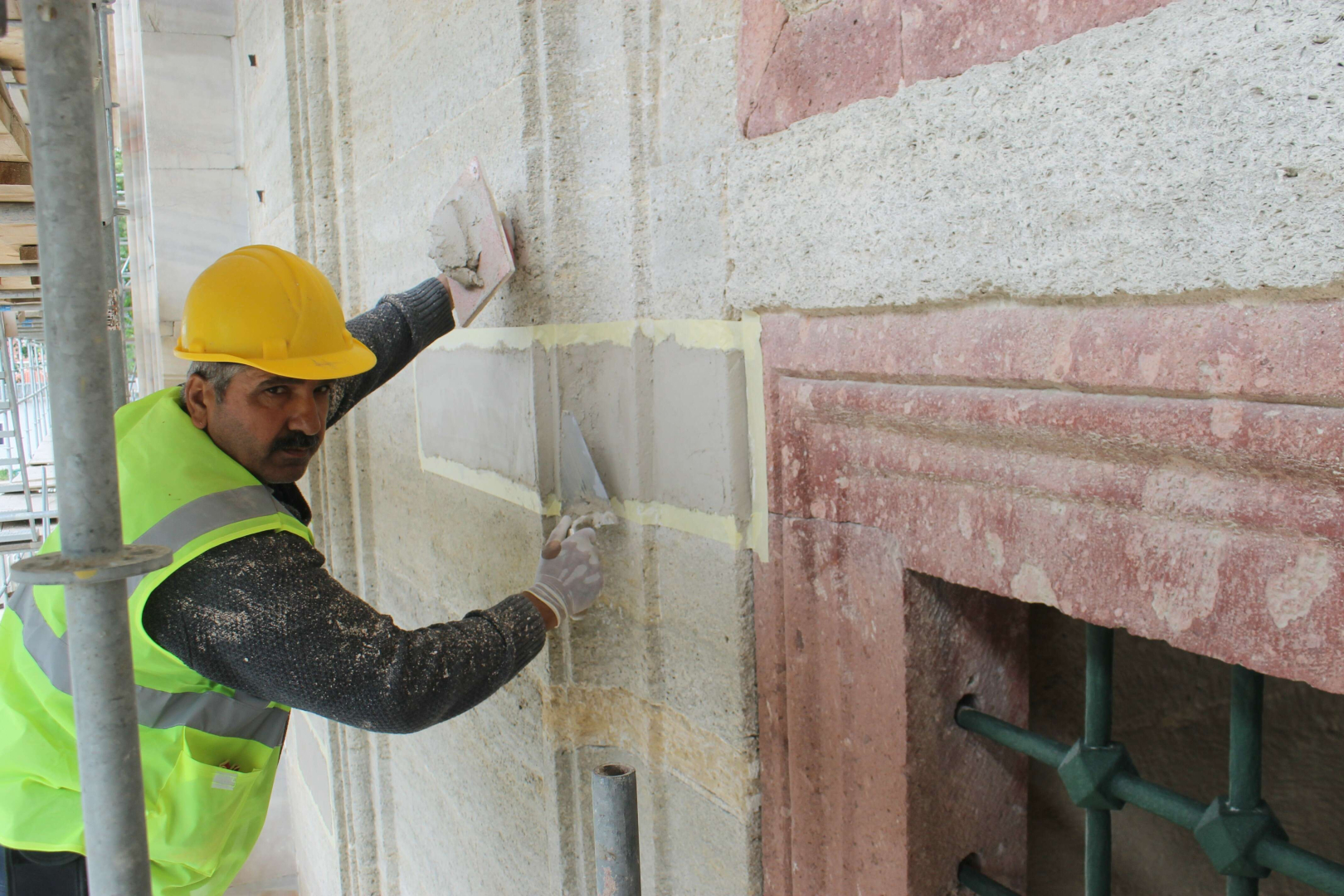 1989 yılında en son kubbe kurşunları ve kısmi restorasyon çalışmaları sonrası en büyük restorasyon olduğu vurgulayan Saraç, “Kubbelerin onarım çalışmaları ve kurşun kaplama imalatlarını tamamlandık. Cami ama kubbe, avlu kubbeleri ve beden duvarlarında kalem işi araştırma raspaları tamamlanmıştır. Bulunan yeni veriler ışığında kalem işi uygulama projelerinin hazırlık çalışmaları devam etmektedir. Caminin dış cephesinde taş temizliği, taş onarımları ve plastik onarım çalışmalarımız devam etmektedir” diye konuştu.