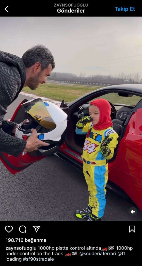 Kenan Sofuoğlu'nun 4 yaşındaki minik oğlu Zayn Sofuoğlu, yaptıklarıyla dikkatleri üzerine çekmeye devam ediyor. Sık sık kullandığı araçlarla gündeme gelen, yaşıtları oyuncaklarla oynarken pistin tozunu attıran minik yetenek Zayn'i, dünya genelinde milyonlar izliyor. Babasının değeri 40 milyonun üzerindeki lüks Ferrarisi'ni pistte tek başına kullanan Zayn adeta ağızları açık bıraktı. Minik yeteneğin, bin beygir güce sahip aracı adeta oyuncak bir araç gibi rahat kullanması da dikkatlerden kaçmadı. Zayn Sofuoğlu'nun sosyal medya hesabından ‘1000 hp pistte kontrol altında' denilerek yapılan paylaşım ise kısa sürede 2 milyonun üzerinde izlenmenin yanı sıra yüz binlerce yorum ve beğeni de aldı.