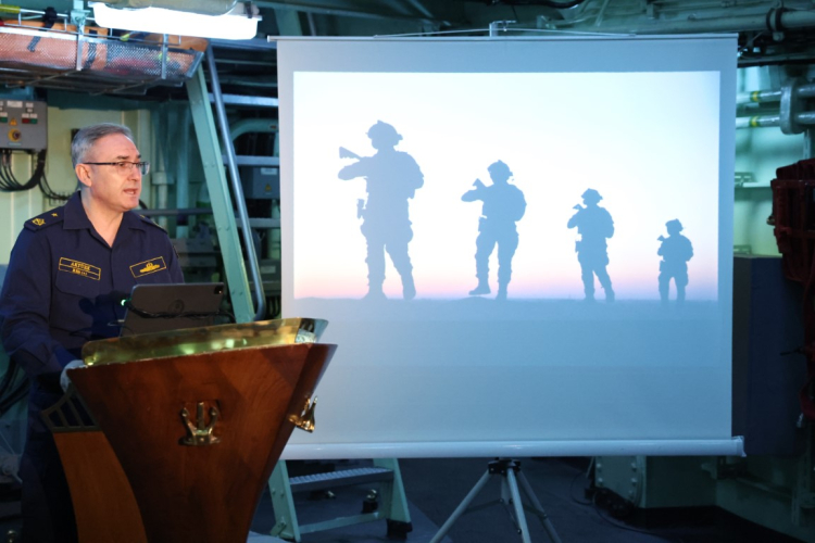 Milli Savunma Bakanlığı tarafından haftalık bilgilendirme toplantısı, "Mavi Vatan-2025 Tatbikatı" çerçevesinde Muğla’nın Marmaris ilçesindeki Aksaz Deniz Üs Komutanlığı’nda TCG Salihreis gemisinde gerçekleştirildi. Basın toplantısında konuşan Milli Savunma Bakanlığı Basın Halkla İlişkiler Müşaviri Tuğamiral Zeki Aktürk, gündeme dair son gelişmeleri aktardı.