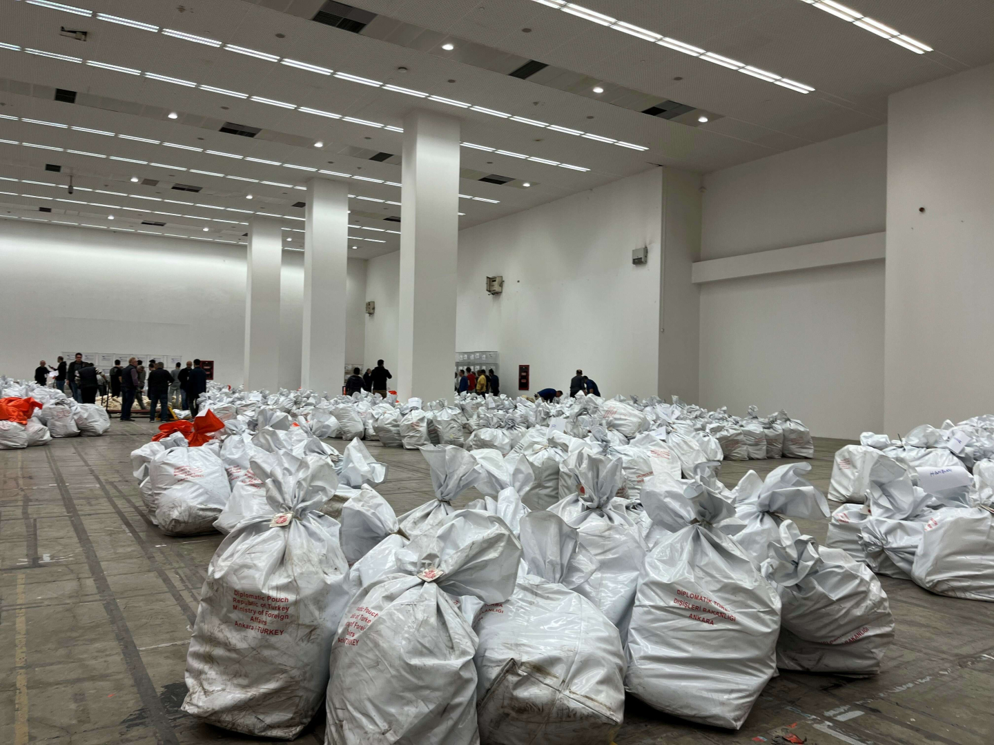 Yurt Dışı İlçe Seçim Kurulu Başkanı Ali Uğuz, 72 ülke 151 temsilcilikte oy kullanıldığını hatırlatarak, “Kullanılan oylar diplomatik torbalara konularak üç kargo uçağıyla doğrudan Ankara'ya geldi. Şu an burada 27 Nisan-9 Mayıs yurt dışı temsilciliklerinde kullanılan 1 milyon 817 bin oy var. Gümrüklerde halen oy verme işlemi devam ediyor. 14 Mayıs saat 17.00'a kadar devam edecek. O oyları biz saymayacağız, gümrüklerde kurulan seçim kurullarınca sayılıp bize birleştirme tutanakları gönderilecek” dedi.