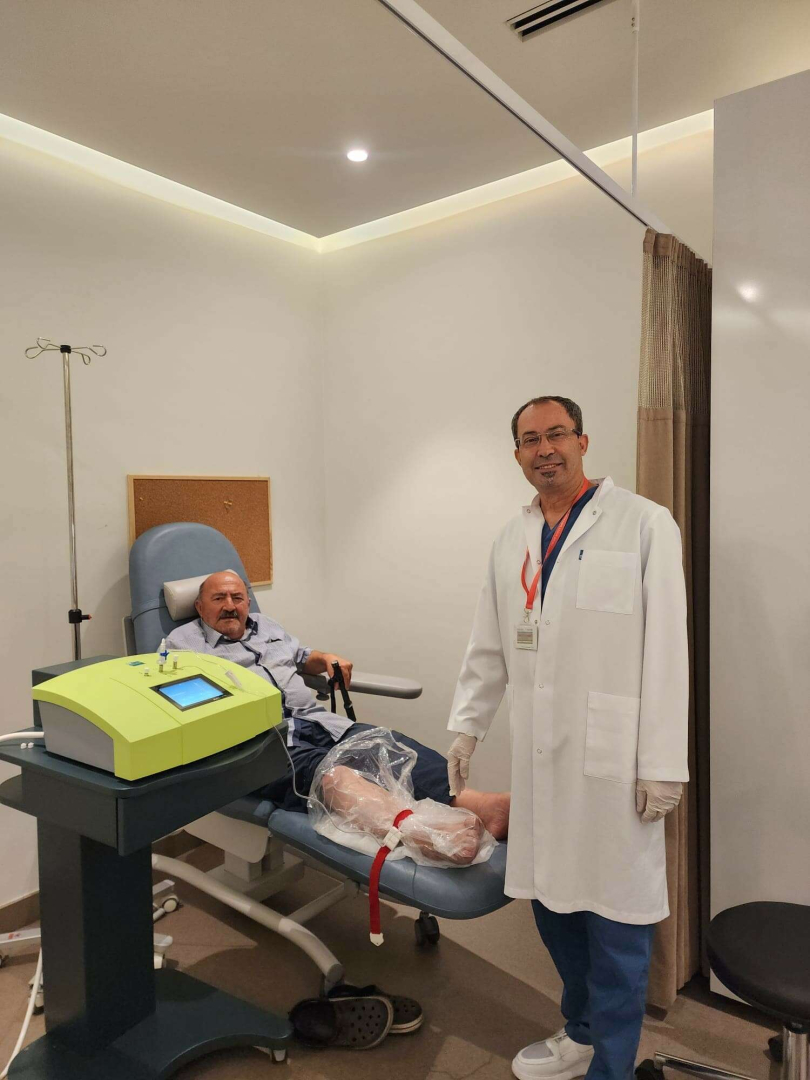 Uygulanan tedavi hakkında konuşan Romatoloji uzmanı Dr. Yüksel Karakoç, “Hastanemizde ilk ozon tedavimizi gerçekleştirdik. Tip2 diyabet hastası olan H.S hastamızın sağ ayak tabanı altında büyük ülseri vardı. Ortası nekrotik ayak metetarsal bölümü sert ve ağrılıydı. Derin dokularda iskemik hasarları vardı. Bir süre farklı antibiyotik tedavileri almış. Biraz iyileşme olmuş. Biz bu tedaviye ek olarak ozon tedavisi uyguladık. Hem majör otohemoterapi, hem bagging (torbalama), hem de ozon yağı ile ayağa masaj şeklinde 3’lü kombine tedavi başladık. İlk iki seansta bile ülserinde iyileşme belirtileri başladı. İnşallah tedavinin tamamlanmasıyla da sağlığına kavuşacaktır” dedi.