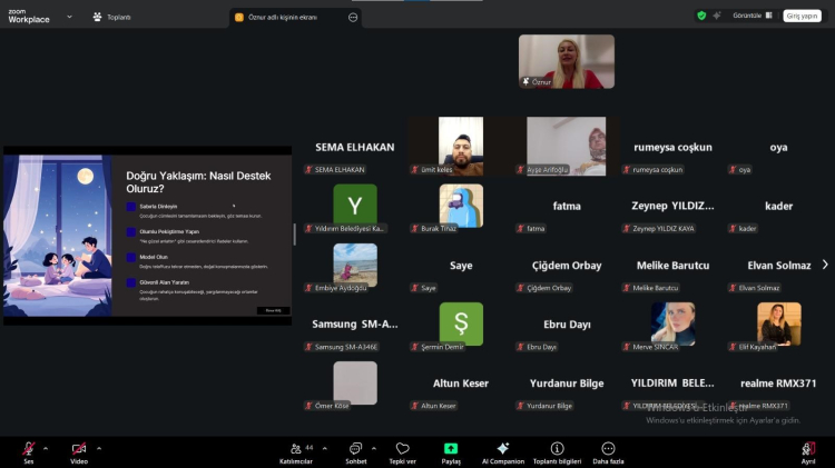 Yıldırım Belediyesi, pandemi süreciyle birlikte çocuklarda artış gösteren konuşma bozuklukları ve bu durumun psiko-sosyal etkilerine dikkat çekmek amacıyla farkındalık çalışması gerçekleştirdi. Sosyal belediyecilik anlayışıyla hayata geçirilen çalışma kapsamında, velilere ve alanda görev yapan uzmanlara yönelik bilgilendirici bir seminer düzenlendi. Online olarak düzenlenen seminerde konuşan Psikolojik Danışman ve Dil ve Konuşma Bozuklukları Uzmanı Öznur Kuş, pandemi sonrası dönemde konuşma bozukluğu şikayetlerinde bir artış yaşandığını ifade ederek, erken farkındalık ve doğru yönlendirmenin çocukların gelişimi açısından kritik öneme sahip olduğunu belirtti.