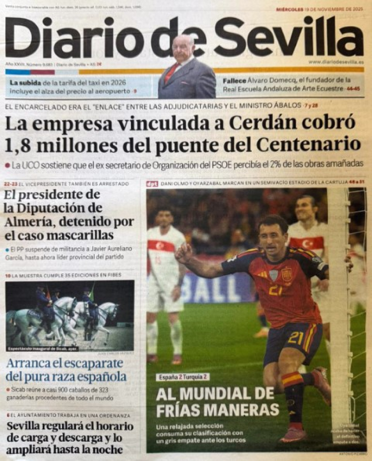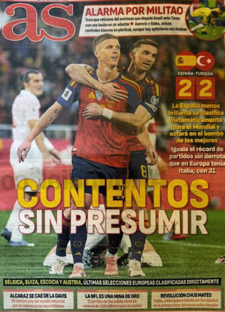 2026 FIFA Dünya Kupası Avrupa Elemeleri E Grubu 6. ve son maçında A Milli Futbol Takımı, Sevilla şehrinde bulunan La Cartuja Stadyumu'nda karşılaştığı İspanya ile 2-2 berabere kaldı. Bu sonuç İspanyol basınında büyük yankı uyandırdı.