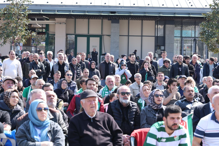 isteyen taraftarlar, Osmangazi Meydanı’na akın etti. Yeşil-beyaz renklere gönül