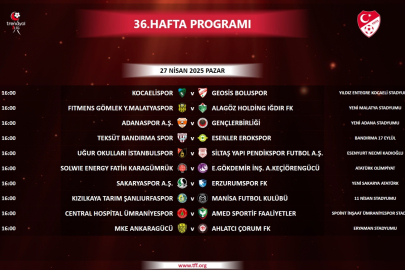 Buna göre 36. haftada tüm müsabakalar 27 Nisan Pazar günü saat 16.00’da yapılacak.