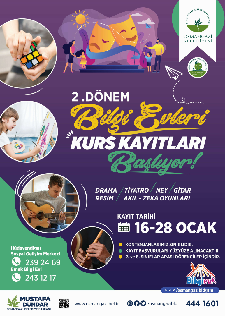 Osmangazi Belediyesi’nin en önemli sosyal projelerinden olan Bilgi Evleri, birbirinden farklı eğitim programıyla yüzlerce öğrenciye hizmet veriyor. Uzman eğitmenler eşliğinde gerçekleşecek ikinci dönem atölye çalışmaları, 6 Şubat Pazartesi günü başlayacak.