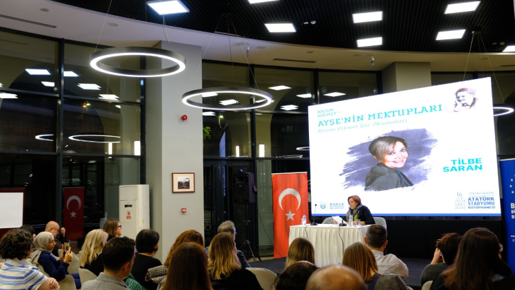 Bursa Büyükşehir Belediyesi tarafından ‘2024 Bursa Nâzım Hikmet Yılı’ etkinlikleri kapsamında hazırlanan ‘Büyük Tanıklık: Gün Benderli Nâzım Hikmet’i Anlatıyor’ programı, sanatseverlere büyük şairi daha yakından tanıma fırsatı sundu. Etkinliğe katılanlar Tilbe Saran'ın eşsiz sesinden Nâzım Hikmet şiirleri dinleme ayrıcalığı da yaşadı.