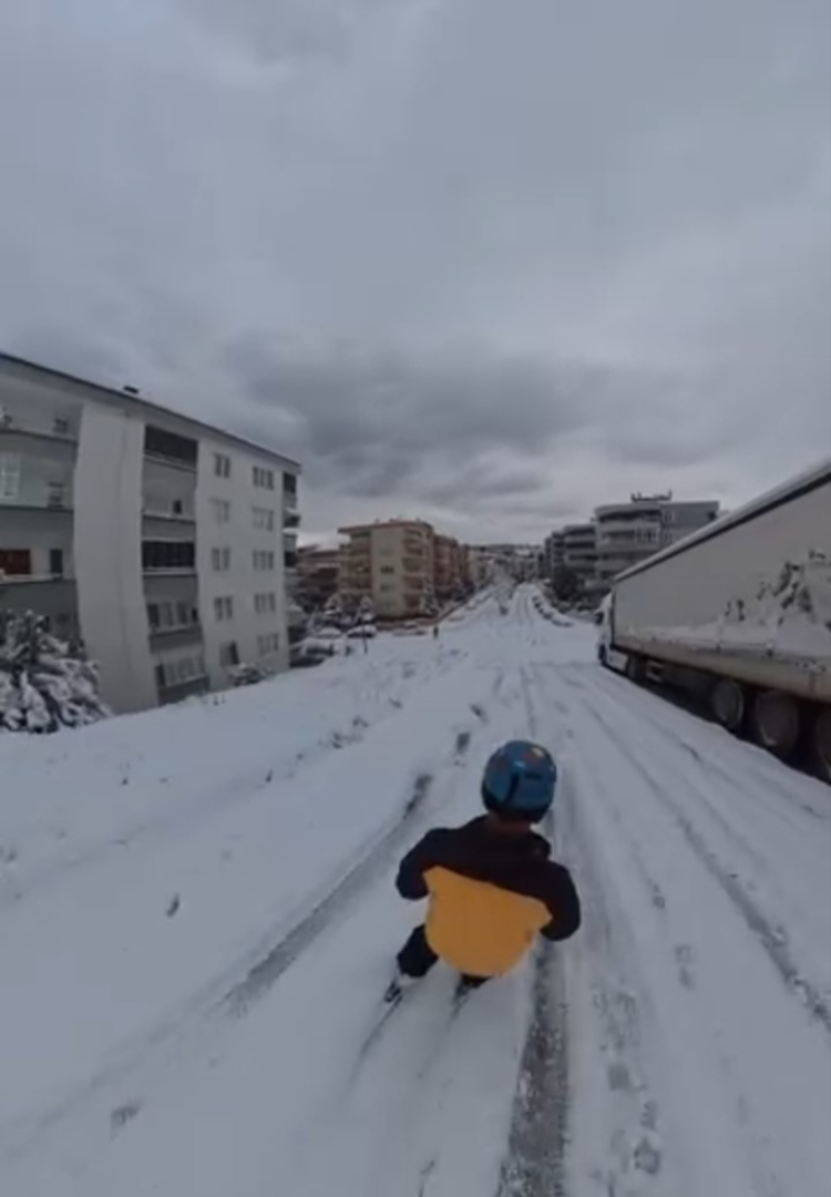 Kayak yaparken kendini kayda da alan vatandaş, karla kaplanan yollarda rahatlıkla ilerlediği anları sosyal medyada paylaştı. Görüntüler kısa sürede ilgi gördü.