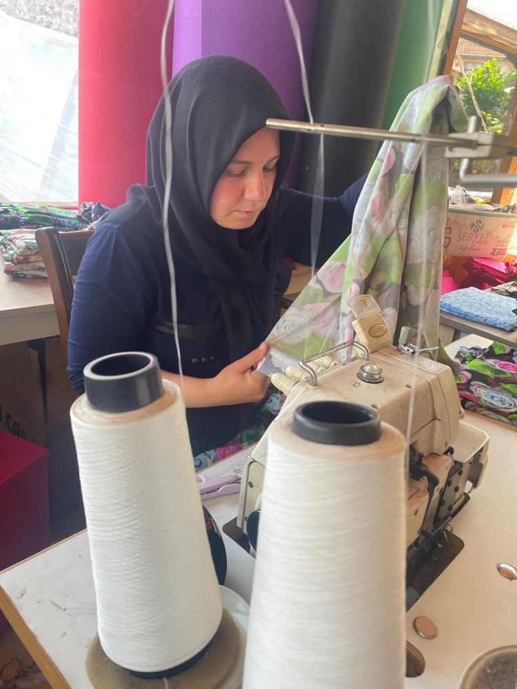"Biz de eşimle şalvar ve tülbentleri hazır alıp satıyorduk. Ancak satın alınanların 10-20 santimetre kısa olunca tüketicilerden olumsuz geri dönüşler aldık. Ben de 5-6 yıl önce kendim dikmeye karar verdim. Hazırlara göre biraz daha uzun yapıyorum çünkü bu kumaşlar biraz da çekme yapabliyor. Bu köyde kendi diktiğimi satyorum. Benim gibi kendi dikip satan sanırım yok. Kendim seçiyorum, kesiyorum, dikiyorum ve satıyorum. 250 lira bir şalvar. Çarşı gibi çok değil satışlar günden güne değişiyor."