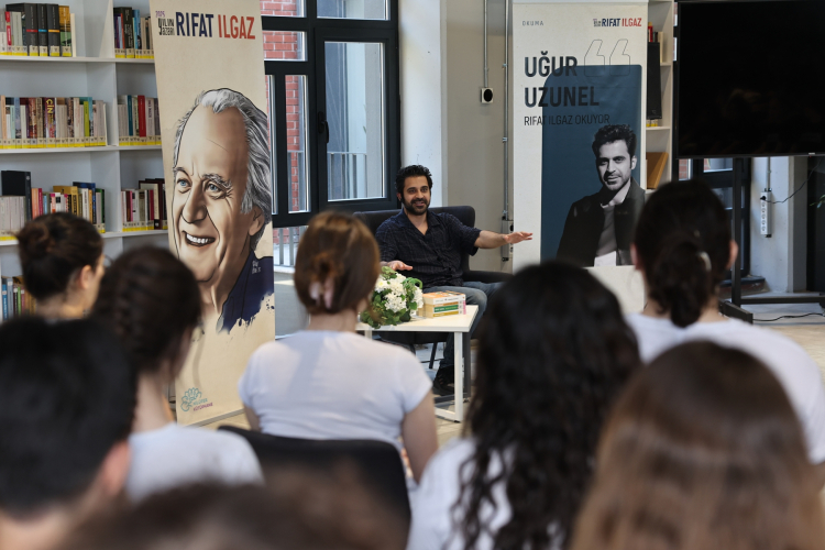 Nilüfer Belediyesi’nin “2025 Yılı Yazarı Rıfat Ilgaz” programları kapsamında oyuncu ve yönetmen Uğur Uzunel, Koza Kütüphane’de öğrencilerle bir araya geldi. Uludağ Koleji ve Çakır Okulları’nın lise öğrencileri ile söyleşi gerçekleştiren genç oyuncu, Rıfat Ilgaz’ın yaşamı, yazın hayatı ile ilgili konuştu. Uzunel aynı zamanda yazarın Hababam Sınıfı isimli kitabından “Yataklık” bölümünü okudu.