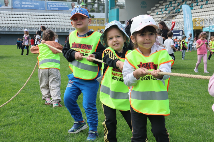 Sembol taşıma, yumurta taşıma, çuval yarışı, halat çekme, top atma ve şişe devirme kategorilerinde yarışan çocuklar, hem eğlendi hem de sportif becerilerini sergileme imkanı buldu. Renkli görüntülerin oluştuğu yarışmalarda çocuklar, keyifli bir gün geçirdi.