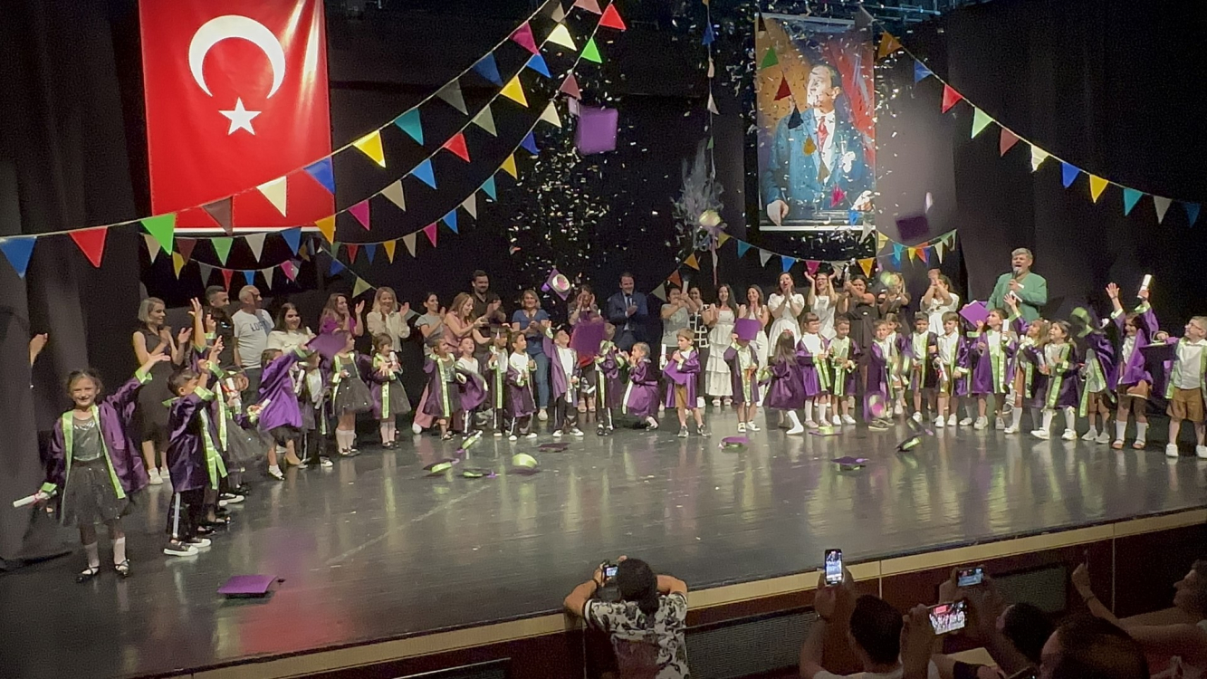 Büyük beğeniyle izlenen gösterilerin sonunda, isimleri okunarak sahneye çıkan 6 yaş grubu öğrencileri mezuniyet belgelerini öğretmenlerinin ellerinden aldılar. Keplerini sahnede fırlatarak ilk mezuniyetlerinin coşkusunu yaşayan minikler, kreşlerinden mezun olmanın ve yeni bir eğitim hayatına başlamanın mutluluğunu yaşadılar.