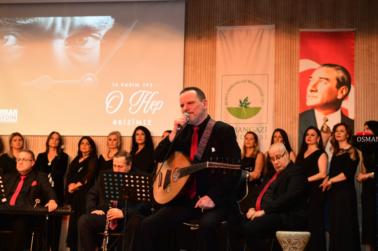 Osmangazi Belediyesi Türk Sanat Müziği Korosu, 10 Kasım Atatürk’ü Anma Günü’nde Ulu Önder Mustafa Kemal Atatürk’ün sevdiği türküleri seslendirerek, Bursalı sanatseverlere duygu dolu anlar yaşattı.